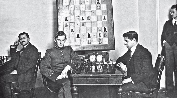 Хосе Рауль Капабланка против Александра Алехина. Москва, 1913 год. Молодой дипломат Капабланка (по окончании университета он получил формальную должность в правительстве) путешествовал по всему миру. В 1913 году побывал в Петербурге, где впервые обыграл талантливого студента-правоведа Алехина.
