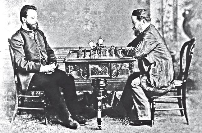 Михаил Чигорин и Вильгельм Стейниц в матче на первенство мира 1989 г. в Гаване (в то время колония Испании)