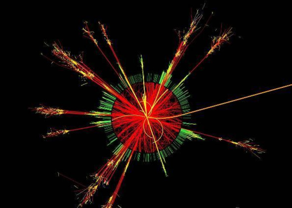 Теперь протоны готовы к столкновению. Направляющий магнит обеспечивает необходимую для этого траекторию их движения. Общая энергия двух сталкивающихся протонов равна 14 ТэВ. Всплеск (фото 1а) от столкновения можно наблюдать в течение двух секунд.