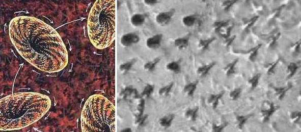 Фото 3.18. Фото Гребенникова ячеек-микроворонок, генерирующих антигравитационные поля с толщиной оболочки шубы 1—2 см, справа система вогнутых резонаторов конусов-волноводов-микроворонок на обратной стороне надкрыльев жуков.