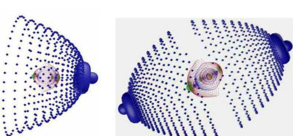 – в свёрнутом состоянии в форме сферы магнитного монополя с противоположным знаком после перезарядки в узле на полволне,