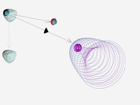 Отсюда следует ещё одна форма жизни и существования зарядов электрическим потенциалом в состоянии динамического равновесия полного взаимного уничтожения пространства контурами-оболочками рождения слоистой холодной безмассовой плазмы и пространства нейтрона.