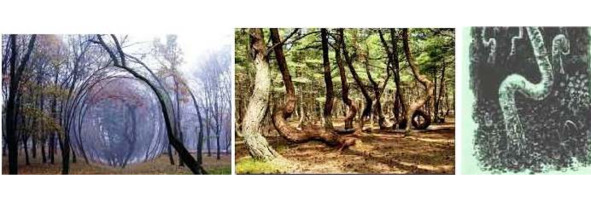 Фото 3.1. Искривления стволов деревьев в аномальных зонах – Санта-Круз, Медведицкая гряда и Заколдованная роща.