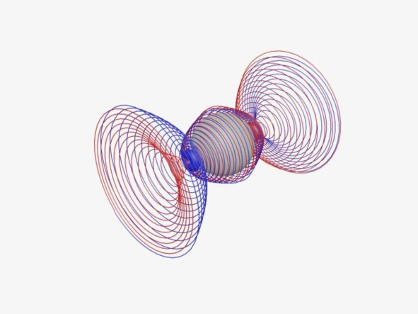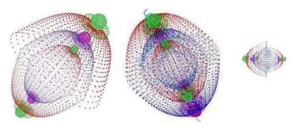 Итак нейтрон – это три вложенных друг в друга оболочки со структурой нейтральных мезонов – три ядерные оболочки (Фото 4), составленные из противоположных по знаку электрического заряда частиц со структурой типа мюонов – сложная центральная интеграция материи-контуров в состоянии покоя. Это основное свойство гравиэлектромагнитных диполей высоких резонансных частот.