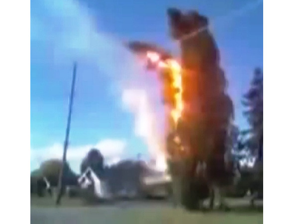 Фото 4. Столб вспыхнувшего огня от переброшенного облака электрического эфира – следующий кадр из этого же видеоролика.
