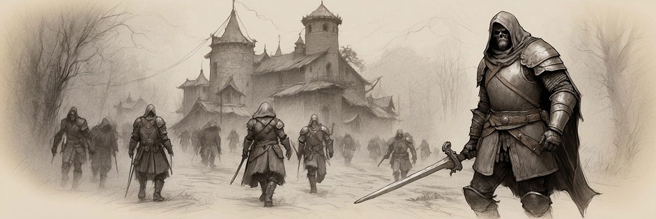 Посчитав недостаточным освоение тракта только с помощью рыцарей и наёмников, Граф Миртель отправил зов Ордену. Ему были нужны специалисты, что сражались с чудовищами Загорья – охотники, что пять лет сдерживали куда как более страшных существ, исполняя службу под контролем Хранителя их крепости. И тогда Собор Крепости Рух, предварительно оценив ситуацию, сформировал боевую группу для зачистки тракта – четырнадцать бойцов, готовых выполнить поручение Ордена и связавших себя с ним договором.