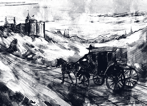 Телохранитель взобрался на карету и протиснулся, скрипя доспехами, через узкую дверцу. Он сел напротив своих покровителей и склонил голову, приветствуя леди и лорда.