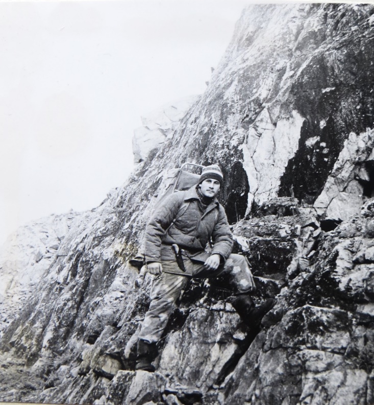 Утро выдалось тихое, безветренное и тёплое, хотя и пасмурно, но погода нам отлично подходит. После завтрака, собрали рюкзаки делаем пару фото у ручья, легко переходим ручей и смотрим верх, на круто уходящую в небо скалу.