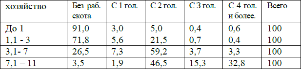 В виду отсутствия других данных для определения мощности отдельных социальных групп обратимся к распределению земли по количеству скота.
