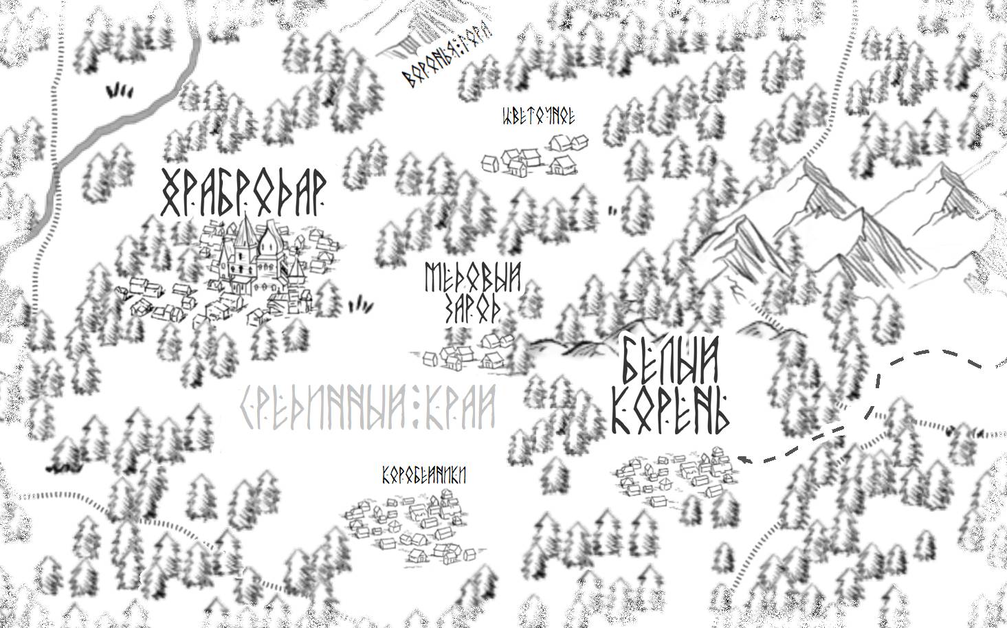 Избы в Белом Корне отличались интересной архитектурой, какую путники не встречали в деревнях Северо-Восточного. Дома рубились узко и высоко, стремясь к расширению площади за счет высоких этажей, а крытые тёсом крыши причудливыми грибами тянулись широко за пределы сруба. Влево и вправо от главной улицы уходили узкие пролеты: по ним могла проехать телега, но вот сверху они оказывались закрыты крышами соседствующих изб – компромисс между плотной застройкой и дорожной сетью.