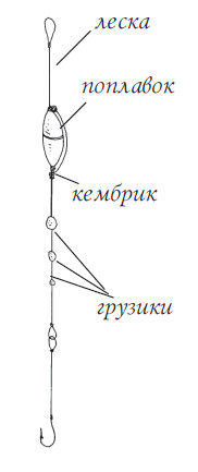 Возьмем за основу леску 0,1. Удилище (4 м) оснащается следующим образом (рис. 2).