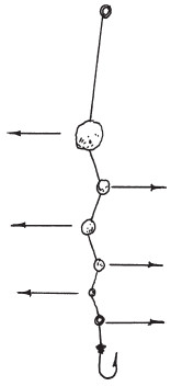 Снасть оснащается не менее чем тремя грузилами, из которых внизу самое маленькое. Плотва часто поднимает насадку, но рыба не должна чувствовать тяжесть грузила.