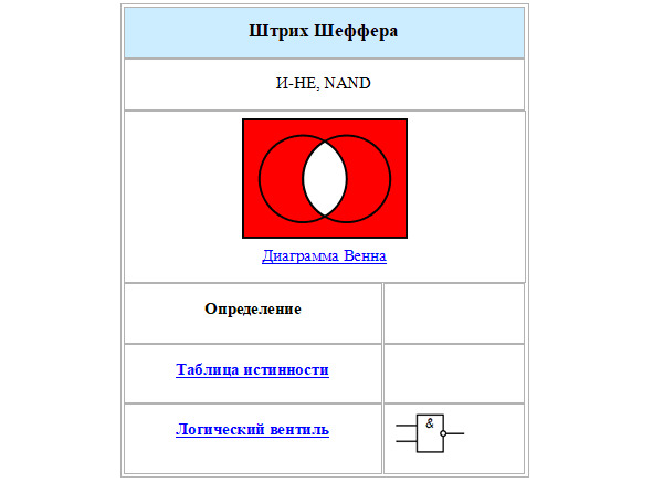 В общем количестве логических операций штрих Шеффера занимает особое место среди логических операций.