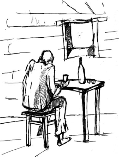 Всем он был хорош, но была одна беда: два раза в год он запирался в сарае и никого к себе не пускал ровно десять дней. Всё это время он пил водку. Потом выходил, исхудавший, бледный и пристыженный, и опять портняжил примерно полгода до следующего запоя.
