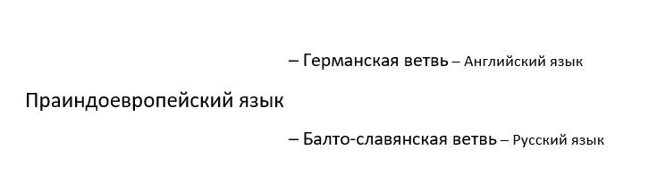 Далее, благодаря сравнительно-историческому языкознанию, была создана структура (нарисовано дерево), согласно которой все индоевропейские языки делятся на так называемые «ветви». Сосредоточимся только на теме этой книги и не будем дальше углубляться, описывая полную структуру дерева индоевропейских языков. Укажем лишь, что английский язык входит в «Германскую ветвь», а русский язык входит в «Балто-славянскую ветвь».