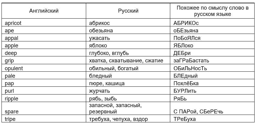 Берём английские слова, которые содержат букву английская «P», заменяем её на русскую букву «Б».