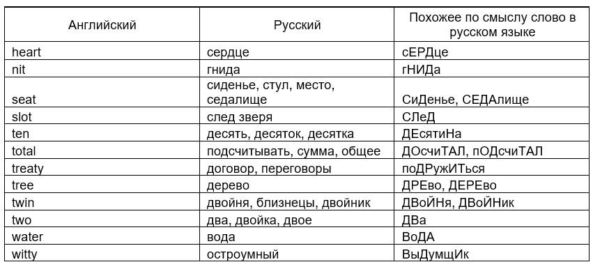 Выходит, что в английском языке, как представителе «Германской ветви», произошло это «передвижение согласных» и английская речь исказилась по отношению к исходному языку.