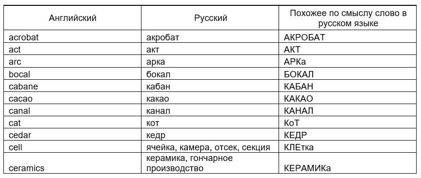 Заметьте ещё один интереснейший момент в словах «Cedar», «Cell» – англоговорящие уже произносят английскую «C» не как русскую «К», а как русскую «С»: «Сидар», «Сэлл». А с «CeramiCs» вообще кошмар: «СерамиК». То есть в одном и том же слове, одна и та же буква будет в английском звучать совершенно по-разному. Именно поэтому, в начале книги я написал, что моя методика поможет вам переводить и запоминать слова, но не произносить их на английском. Сначала неправильная запись слов, а затем неправильное их чтение с тысячелетиями сделало английский абсолютно не воспринимаемым на русский слух. Этому следует теперь тренироваться отдельно. Вы только послушайте в гугл переводчике как теперь звучат у них слова «cHOiR» – «ХОР» или «CENTAUR» – «КЕНТАВР».