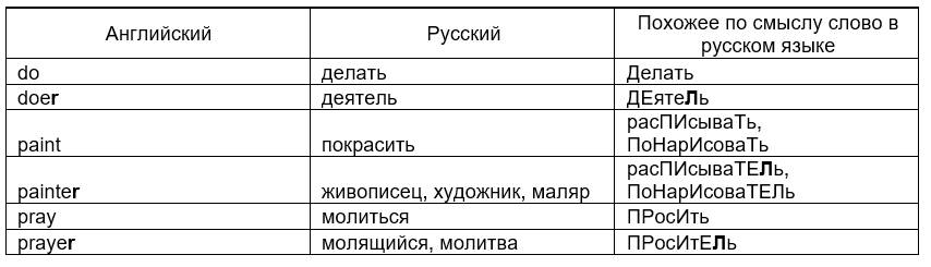Английский язык при этом тяготеет к «R» на конце, а русский к «Л». Но именно тяготеет. Есть же в русском «аптекаРь», «слесаРь», «пекаРь» и так далее.