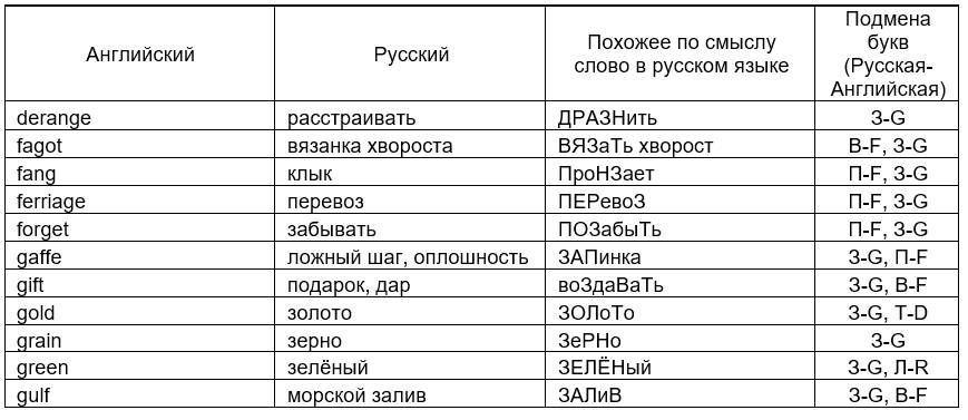 «Если мы не видим смысла в английском слове сразу, но в нём есть буква «F», то следует перебрать подмены П-F, В-F, Б-F в порядке убывания».