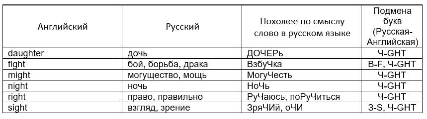 Вот только англоговорящие давно разучились читать «GHT», во всех описанных случаях они говорят просто «Т»: «лайТ», «майТ», «файТ». Не удивительно, с такой безграмотностью в английском, что два таких разных слова как «луч» и «легко», когда-то стали писаться и произноситься совершенно одинаково.
