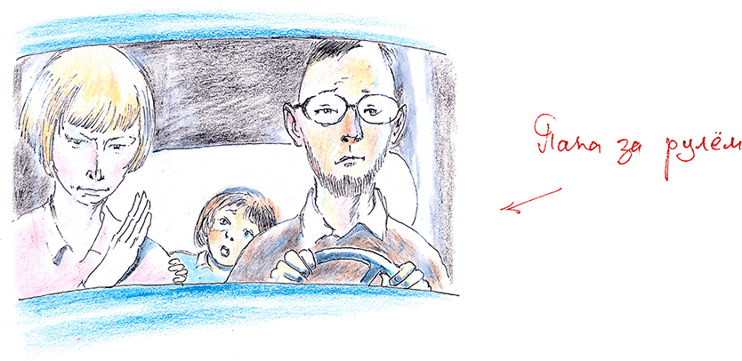 Машина стала разворачиваться во дворе. Маша, посмотрев на одиноко стоящего на крыльце брата, прошептала папе, что, может быть, Тёма уже исправился и они возьмут его с собой? Папа остановил машину и вопросительно взглянул на маму.