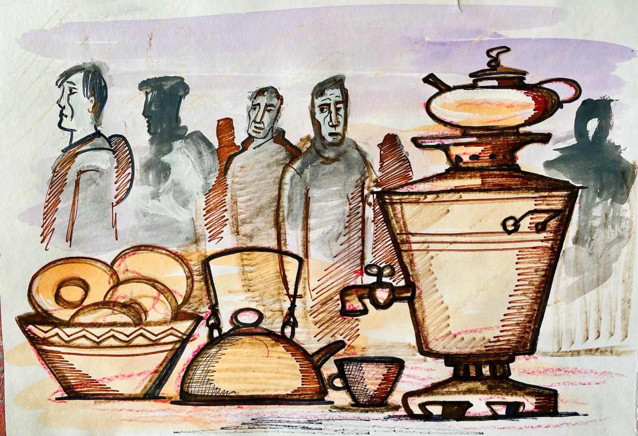 На пункте сбора были формальности. Встречали хорошо, все вежливые. В актовом зале, где размещались уже прибывшие, на столе стоял большой самовар, чай, печенье. Во дворе кто-то раскладывал свои запасы, приглашали присоединиться к трапезе. Так скажем, сладко коротали время в ожидании остальных. Приезжали добровольцы со всех военкоматов Края. В этот день собралось чуть больше сорока человек.