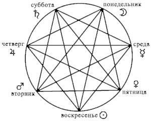 Вторая группа – это семь сочетаний по лучам (через две планеты). Она связана с принципом времени, и устанавливает управление днями недели.