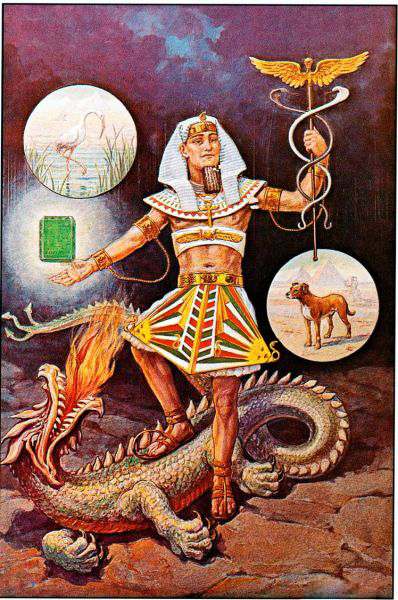 Постепенно бог пастухов – Гермес стал богом посвященных Гермесом – Тотом или Гермесом Трисмегистом – Триждывеличайшим. Это учение, названное герметизмом, вобрало в себя все тайные науки античного мира, включая астрологию. Отсюда наше слово «герметичный» – закупоренный непроницаемый. Некоторые трактаты герметизма сохранились до наших дней, это такие книги как «Ключ», «Асклепий», «Дева мира» и «Пемандр». Самый знаменитый из них: «Пемандр» или «Поймандр». Это самый полный трактат по герметизму. Он содержит в себе теологию, антропогонию, сотериологию (учение о спасении) и эсхатологию. В очень кратком изложении его суть в следующем: в самом начале существует Единый Бог как свет. Затем появляется мрак или материя по «Менандру» он страшен и угрюм, скручен спиралью и подобен змею. Единый Бог проявляет себя в виде эманаций – излияний, благодаря первой эманации в мире появляются 4 элемента: огонь, воздух, вода и земля. Вторая эманация, низший бог – Творец, Демиург, творит из огня и воздуха 7 небесных сфер. Так созидается весь космос. Третья эманация верховного ума – первочеловек (Адам Кадмон). От соединения его и природы происходит рождение всех людей. Таким образом человек двойственен по своей природе: с одной стороны, как дитя верховного ума – первочеловека, он бессмертен и имеет бессмертную душу; с другой стороны, он смертен, т.к. тело свое он унаследовал от материальной природы. После смерти душа возносится к своему первоистоку: горнему свету, при этом она проходит сквозь 7 небесных сфер, постепенно освобождаясь от материальных оков и сбрасывая все телесные оболочки. Таково вкратце учение «Пемандра». Другие трактаты герметической литературы посвящены отдельным вопросам космологии, эсхатологии, магии, алхимии и астрологии. Самый знаменитый средневековый трактат герметизма – «Изумрудная скрижаль Гермеса Трисмегиста» содержит в себе в очень лаконичной и сжатой форме все основные постулаты этого тайного учения, это как бы квинтэссенция всего оккультизма, он пользуется огромной и заслуженной популярностью среди алхимиков и астрологов. Однако, это сочинение большинством ученых историков относится к гораздо более позднему периоду, возможно к 14 – 15 в.в.