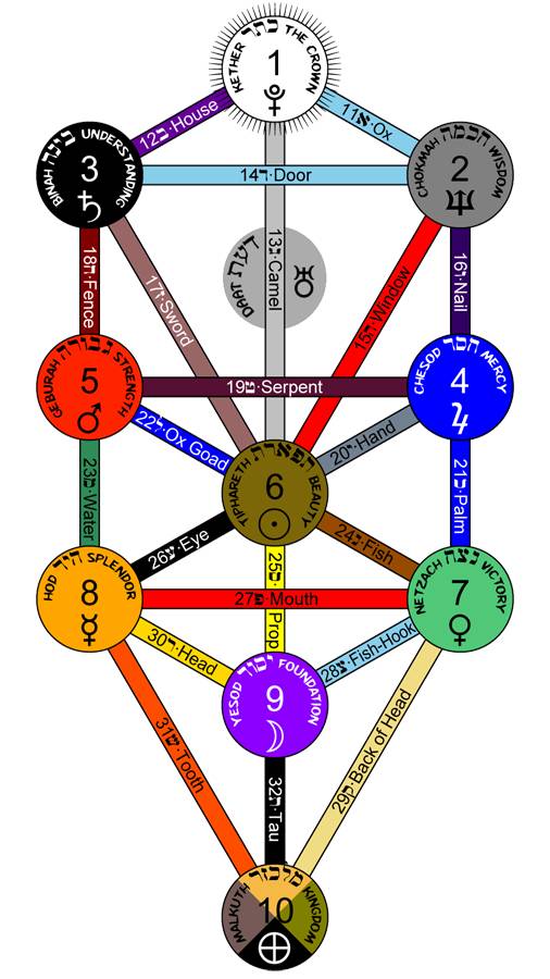 По каббале каждый человек создан по образу и подобию первочеловека или архетипа человека – Адама Кадмона. Адам Кадмон – небесный человек или макрокосмос. Он сотворен 10 божественными эманациями: сефирми. Эти сефиры подобны концентрическим планетным сферам и представляют собой излучения или эманации Бога. Сефиры это основные формы всякого мыслимого Бытия. Созданная с помощью их Вселенная, в зависимости от отдаления от первоисточника делится на различные миры: первый, наиболее близкий к Богу – Ацилут, мир сияний, дальше идут мир творения «Бриа» это мир идей, мир «Иецира» или мир создания и, мир «Асиа» – мир делания – это наш видимый мир. Эти миры не отделены строго один от другого, но взаимно проникают друг в друга. Человек по каббале принадлежит одновременно ко всем этим мирам. Это учение каббалы о 10 Сефирах и мирах было впоследствии очень развито уже в Европе, соединившись со сходным учением герметизма и образовав уже несколько иную западную разновидность Каббалы. Особенно сильны идеи каббалы во французских школах астрологии, где каждая планета находится под влиянием соответствующего ангела Каббалы и связана с определенной Сефирой. Так в разных учениях и школах продолжала жить астрология после заката античного мира.