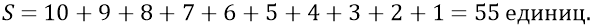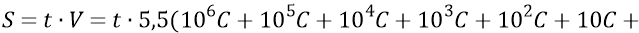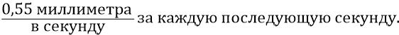 Определим средний коэффициент замедления скорости расширения Скорлупы для дискрета скорости, изменяющейся на порядок её величины. Вычисления сделаем на любом простом примере типа следующего. Разобьём дискрет на 10 частей равного времени. Пусть за первый отрезок времени из этих 10-ти тело, двигаясь пока со скоростью 10 единиц в секунду, прошло путь в 10 единиц расстояния. В следующий отрезок, двигаясь со скоростью 9 единиц, оно прошло путь в 9 единиц и так далее. Тогда за все 10 отрезков телом будет пройден путь: