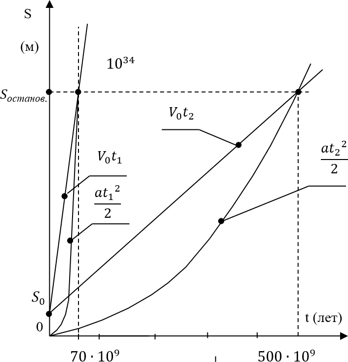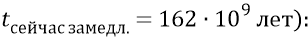 Сейчас (чуть ниже) мы приведём 2 варианта периодов замедления Вселенной, рассчитанных по формуле равнозамедленного движения точки на пути S, при двух различных значениях ускорения «