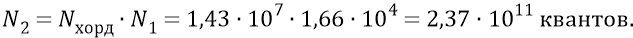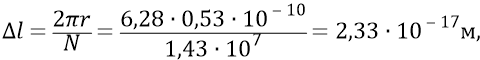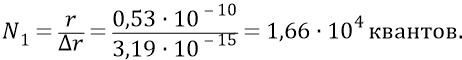 Следовательно, минимальное количество квантов, которое было бы необходимым для того, чтобы удерживать электрон на первой атомной орбите и находящихся в момент «сейчас» внутри окружности орбиты, должно быть следующим: