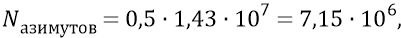 Но теперь в наши оценочные расчёты придётся внести ещё одну существенную поправку, касающуюся количества азимутов в сфере. Уже сейчас число азимутов равно: