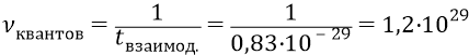 Мы видим, что полученная усреднённая частота следования квантов для кварка – приёмника уступает требуемой на 6 порядков величины. Поэтому нам придётся увеличить плотность распределения квантов на площадке квадратного метра на эти 6 порядков: получим
