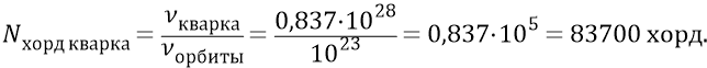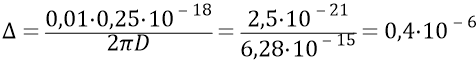 Итак, жёстким ограничением на точностные характеристики передачи потока квантов от кварка – излучателя к кварку – приёмнику будет следующее. Кварк – излучатель, постоянно вращаясь, должен «чиркать» – попадать своим лучом не столько по «большой» площади конструкции этого кварка, сколько по одной сотой части от размера радиуса электромагнитного кольца кварка. Только при таком точном попадании «кольцо кванта на кольцо кварка» между этими кольцами будет возникать преонный резонанс их квантового взаимодействия. Такой дискрет точного попадания концом радиус-луча кварка – излучателя по центру масс кварка – приёмника будет составлять следующую малую часть от всего пути радиус-луча, описываемого им по окружности радиуса D (диаметр нуклона) при полном обороте этого радиус-луча: