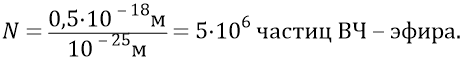 Итак, мы приходим к абсолютно «страшной» для нашего ума плотности эфира, с расстоянием между центрами масс частиц –