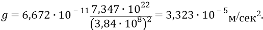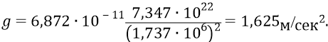 Проверим по этой же формуле значение ускорения свободного падения на поверхности Луны, при радиусе Луны 1737 км: