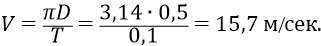 Найдём линейную скорость самой удалённой от центра вращения точки трубы-цилиндра, при угловой скорости вращения 10 оборотов в секунду