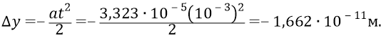 Но поскольку электрон у нас отклоняется в отрицательную сторону оси «y», то знак ускорения «