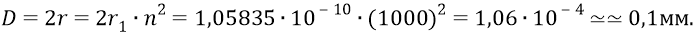 Мы видим, что на самом деле (как мы в том теперь уже абсолютно уверены по многим причинам нашей уверенности) атом с орбитой номер 1000 (тысяча) имеет не тот гигантский диаметр, который этому номеру ставят в соответствие физики (0,1 мм), но всего лишь 0,035 микрон. Такой атом не только невидим глазом человека, но его только-только можно было бы «увидеть» в школьный микроскоп, если бы в микроскоп можно было бы видеть электронное атомное облако. Но гигантский атом с «тысячным» номером физиков, размером 0,1 миллиметр человеческий глаз увидел бы запросто, что немного не вяжется со здравым смыслом: человек своими органами, вроде бы, не должен видеть атомы, как и не должен видеть, например, ультрафиолет, а также ИК-диапазон фотонов.