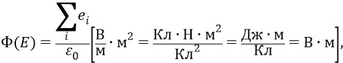 Поток напряжённости электрического поля Е через любую замкнутую поверхность равен полному электрическому заряду внутри поверхности, делённому на постоянную величину