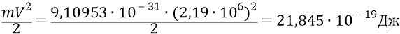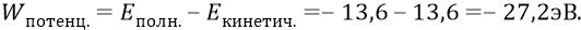 А это значит, что потенциальная энергия атома с электроном, кружащим по первой боровской орбите, равна: