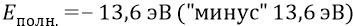 Это значит, что для того чтобы ионизировать водород, то есть оторвать от него электрон, надо к этому электрону, а следовательно – к атому, приложить энергию («плюсовую»), равную этой полной энергии атома, и тогда энергия атома (фактически – разорванного на две части) будет нулевой: