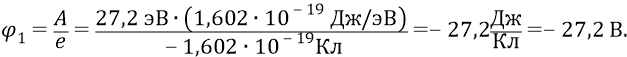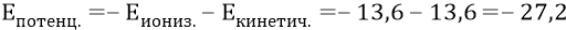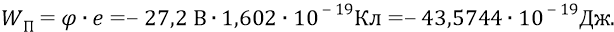 При этом тем потенциалом, под которым находился электрон первой орбиты, был потенциал (–27,2 В). Проверяем: