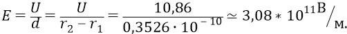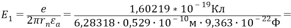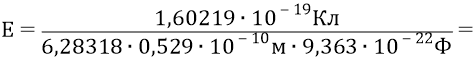 Вычислим теперь величину напряжённости того поля (протона), которая действует на электрон на уровне его первой орбиты:
