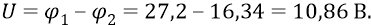Значения потенциальных энергий для первой и второй орбит (в абсолютных величинах): 27,2 эВ и 16,34 эВ. Потенциалы же этих орбит: 27,2 В и 16,34 В. Разность потенциалов между орбитами: