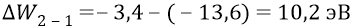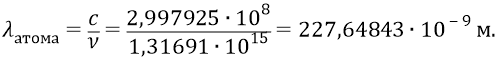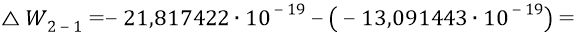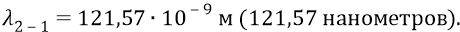 Далее вычислим, например, длину волны фотона, излучаемого атомом в переходе 2–1.