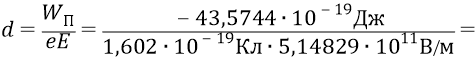 Но тогда то расстояние d, на которое был перемещён заряд электрона для того, чтобы поместить его в потенциал (–27,2 В), определится следующим образом: