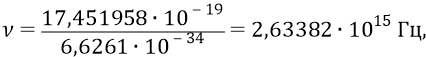 И поэтому частота соответствующего фотона, видимого физиками, но излучаемого на самом деле сразу двумя разными атомами, должна быть (по нашим числовым значениям) следующей: